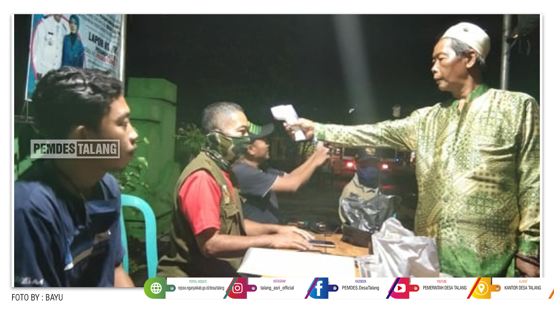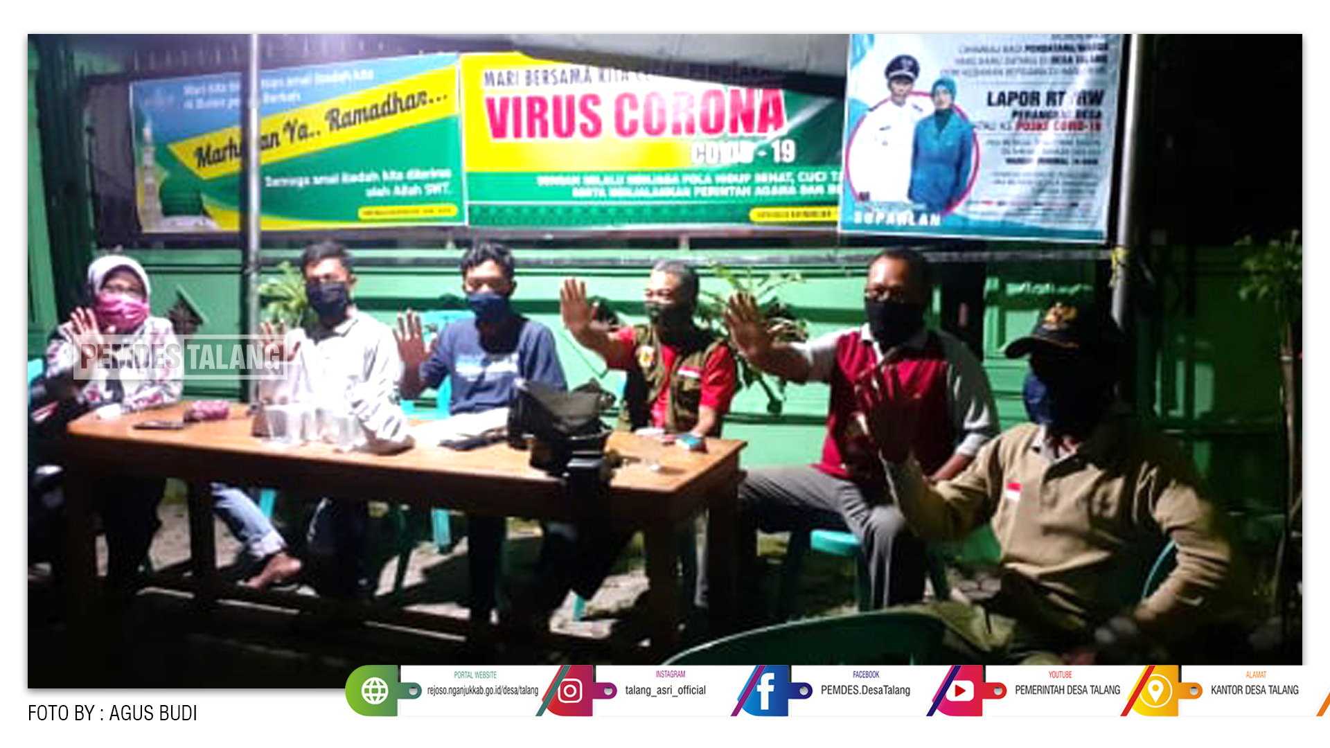 PEMDES TALANG, Selasa,07/04/2020 Pelaksanaan kegiatan Posko COVID19 sesuai dengan jadwal petugas jaga yang telah di edarkan. Kegiatan akan ini akan terus berlangsung sampai wabah COVID19 ini berkurang di wilayah Desa Talang Kecamatan Rejoso Kabupaten Nganjuk