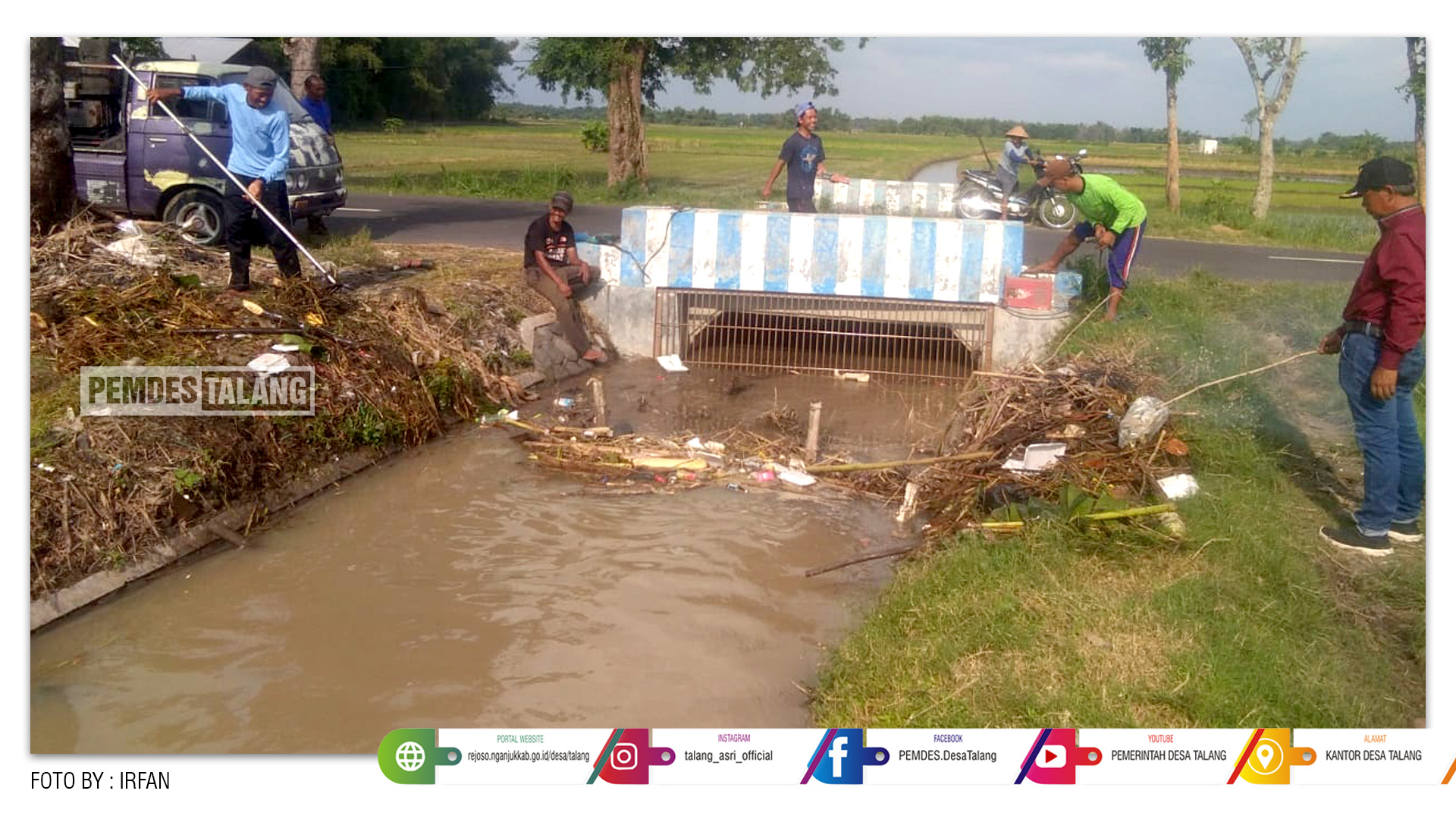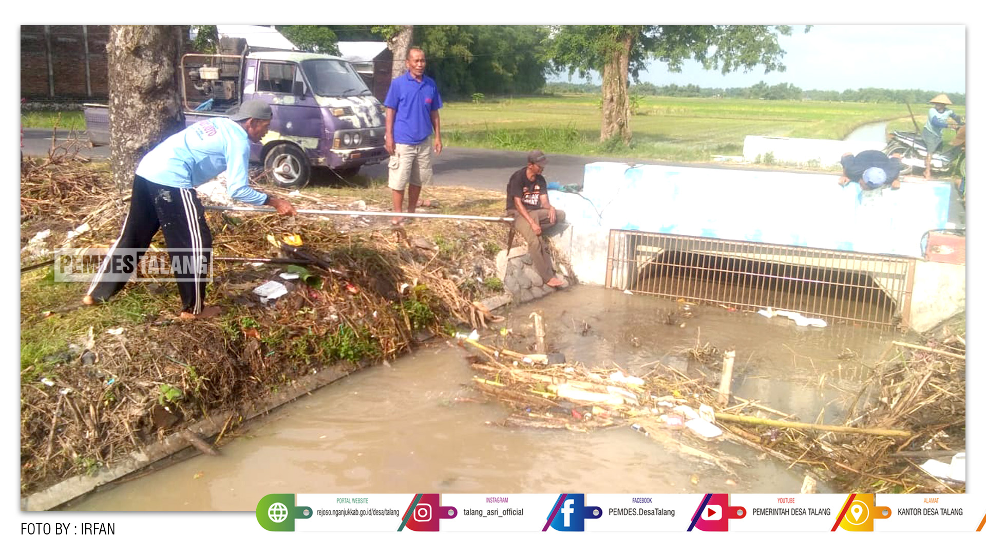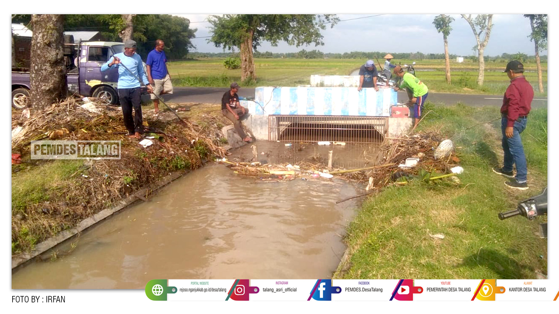 Suparlan (Kepala Desa Talang) mengatakan, kegiatan gotong-royong ini merupakan salah satu upaya untuk menyukseskan pertanian dan dalam mengoptimalkan sistem irigasi yang ada dengan baik maka harus dilakukan pembersihan saluran irigasi biar tidak tersumbat, agar pengairan di sawah dapat berjalan dengan lancar.