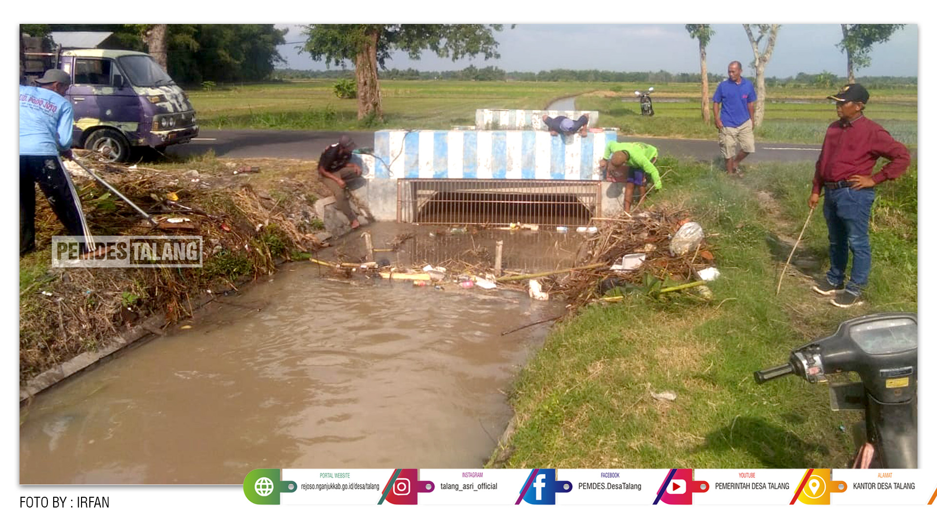 Suparlan (Kepala Desa Talang) mengatakan, kegiatan gotong-royong ini merupakan salah satu upaya untuk menyukseskan pertanian dan dalam mengoptimalkan sistem irigasi yang ada dengan baik maka harus dilakukan pembersihan saluran irigasi biar tidak tersumbat, agar pengairan di sawah dapat berjalan dengan lancar.