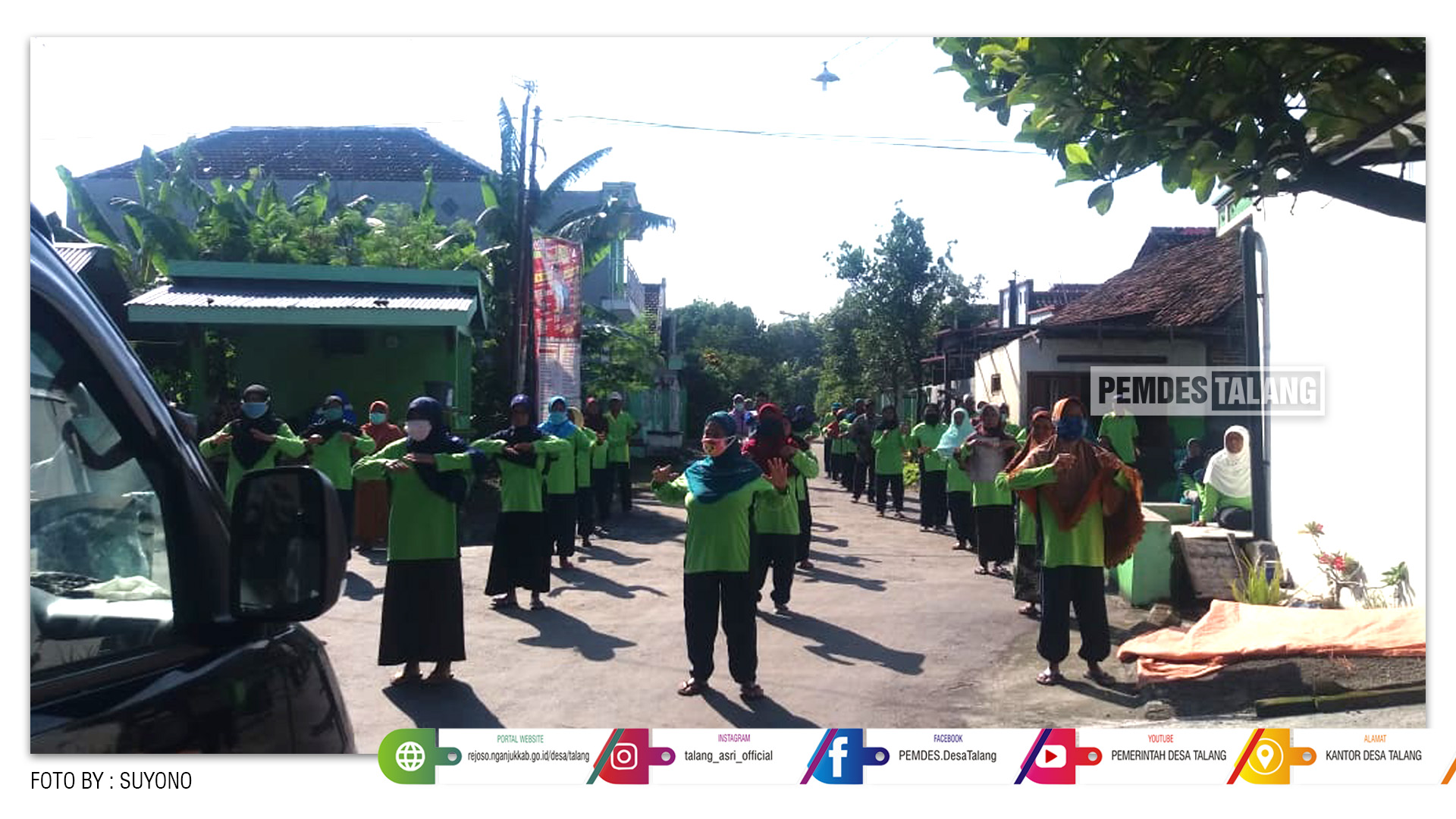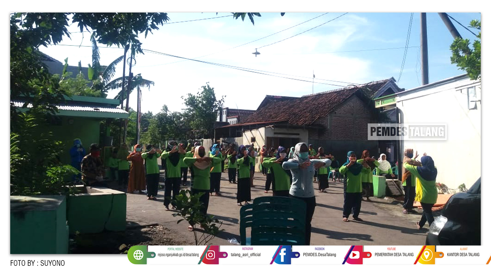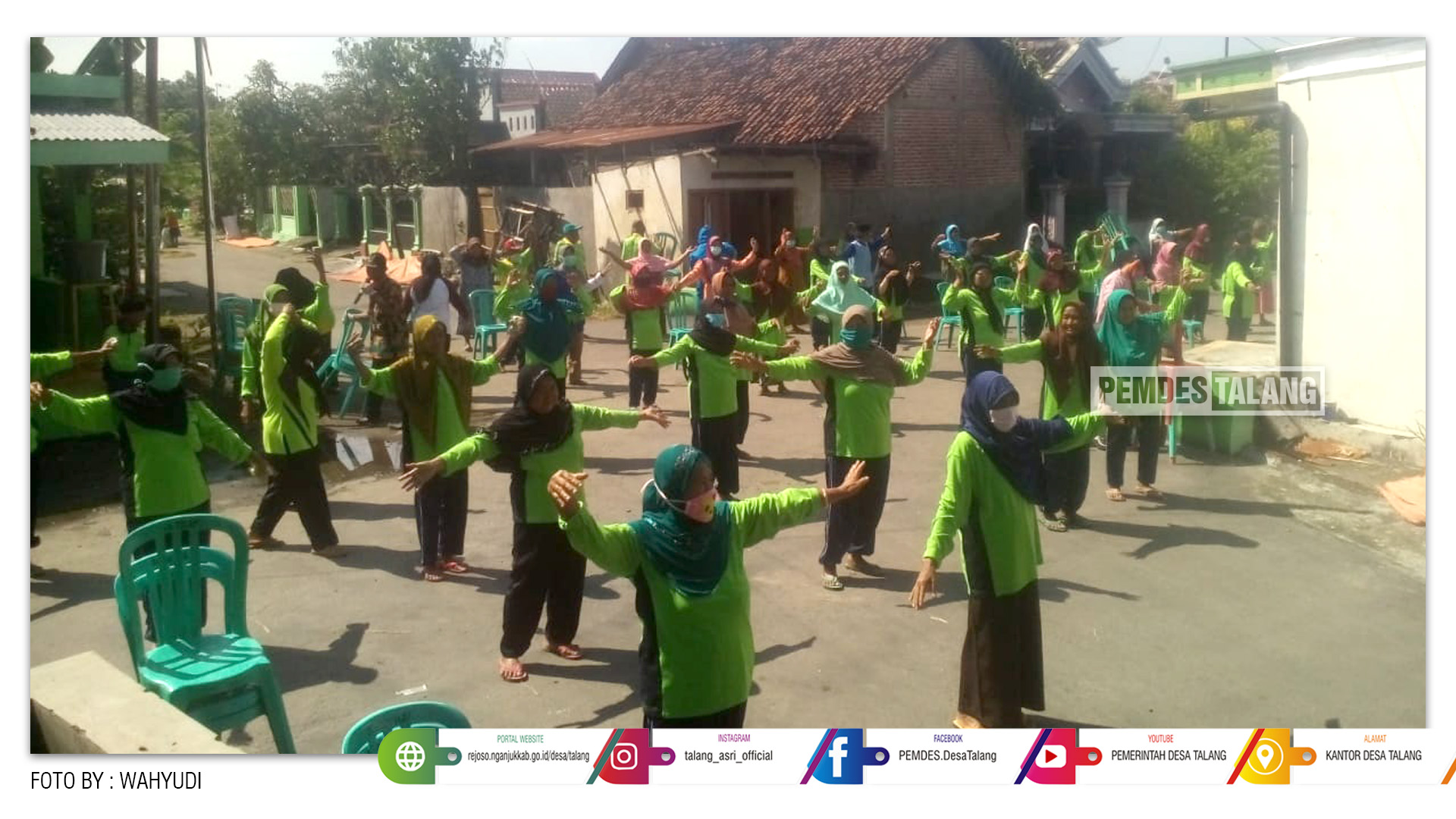 PEMDES TALANG, Kamis (09/04/2020) – Pukul 8 pagi beberapa ibu-ibu lansia sudah berkumpul di Perempatan Ibu Siti yang berada di antara RT 09, RT 08, RT 13 yang letaknya strategis dan berada di pusat Desa Talang Kecamatan Rejoso Kabupaten Nganjuk. Di pagi yang cerah itu, ibu-ibu bersemangat untuk senam lansia yang rutin diadakan di posyandu lansia yang ada di Desa Talang.