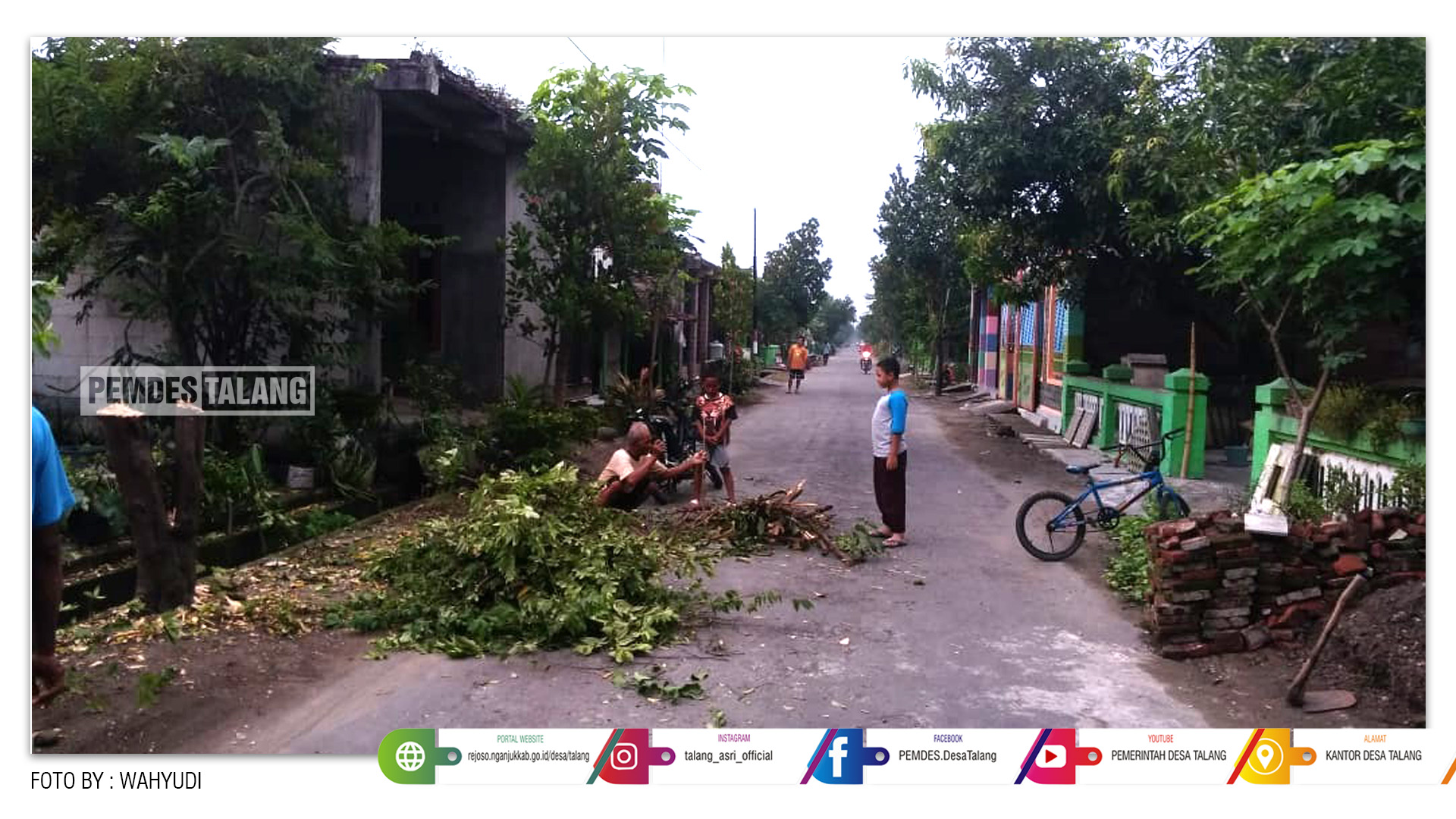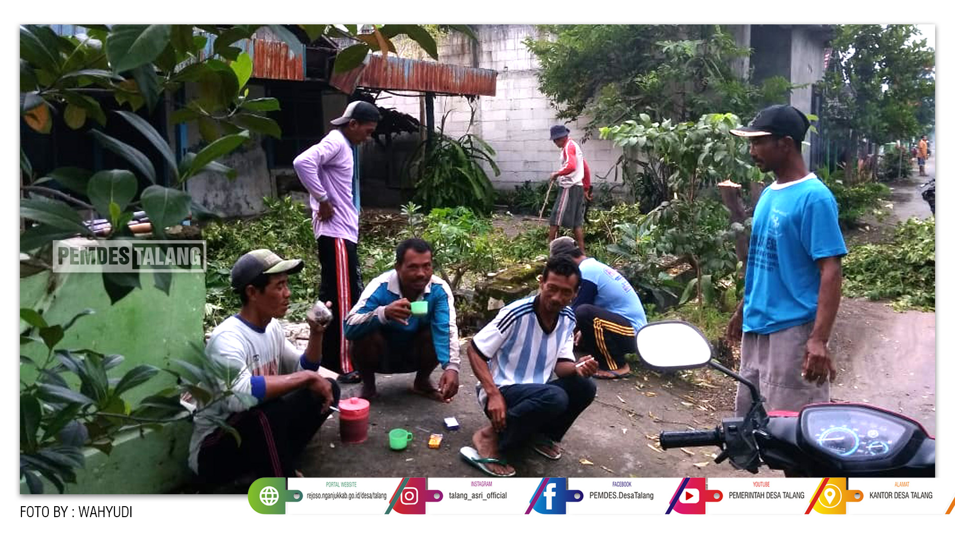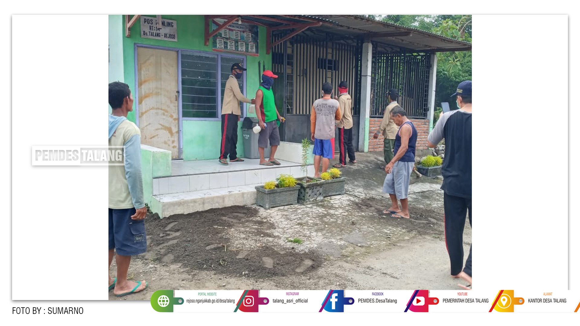 PEMDES TALANG, Warga Desa Talang Kecamatan Rejoso Kabupaten Nganjuk mengadakan Gotong-royong dan Kerja Bhakti di lingkungan RT 14 dan RT15 untuk menjaga kebersihan lingkungan dan mencegah menyebaran virus CORONA yang pandemi ini telah mewabah di seluruh dunia.