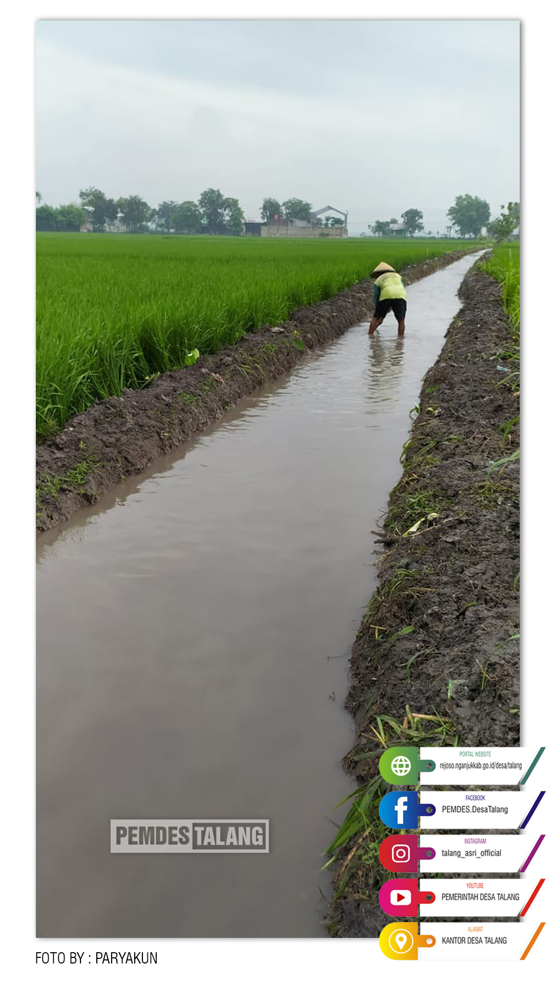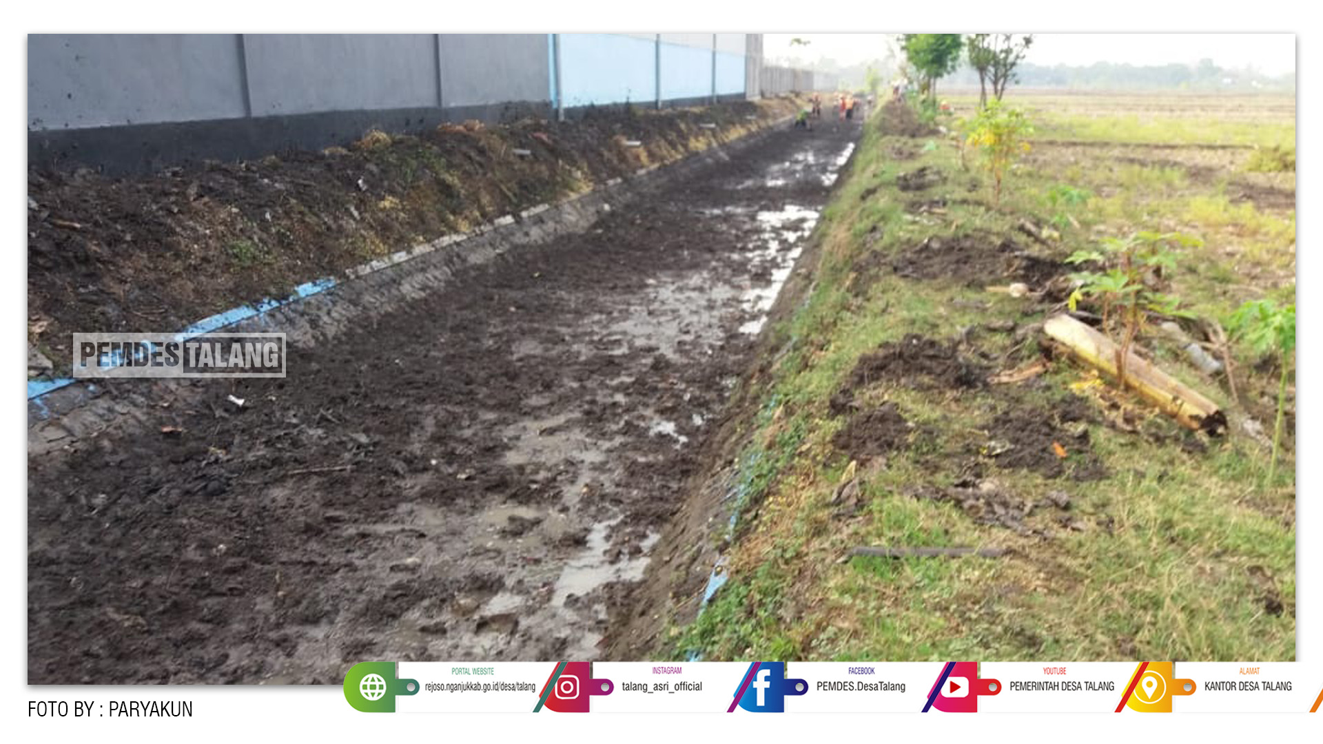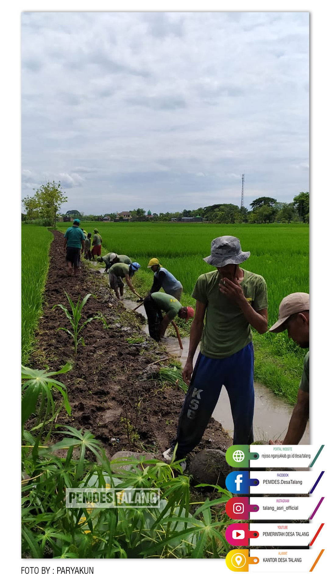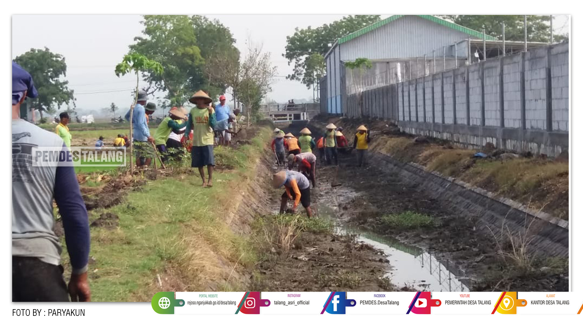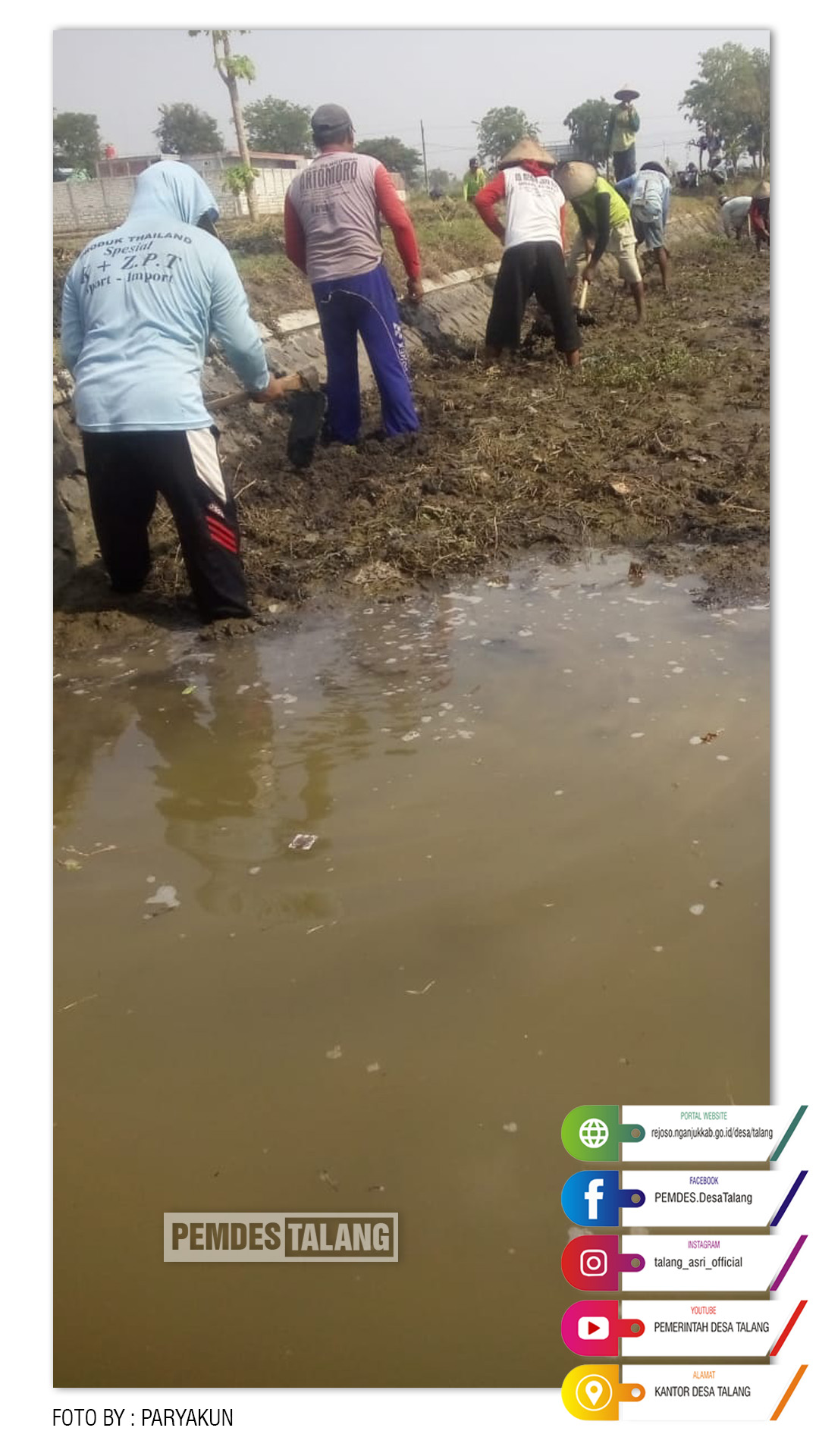 PEMDES TALANG, Puluhan petani dari Desa Talang Kecamatan Rejoso Kabupaten Nganjuk, Minggu, (16/02/2020) membersihkan saluran irigasi dengan cara bergotong-royong. Kegiatan ini dilakukan untuk menyambut musim tanam padi tahun ini.