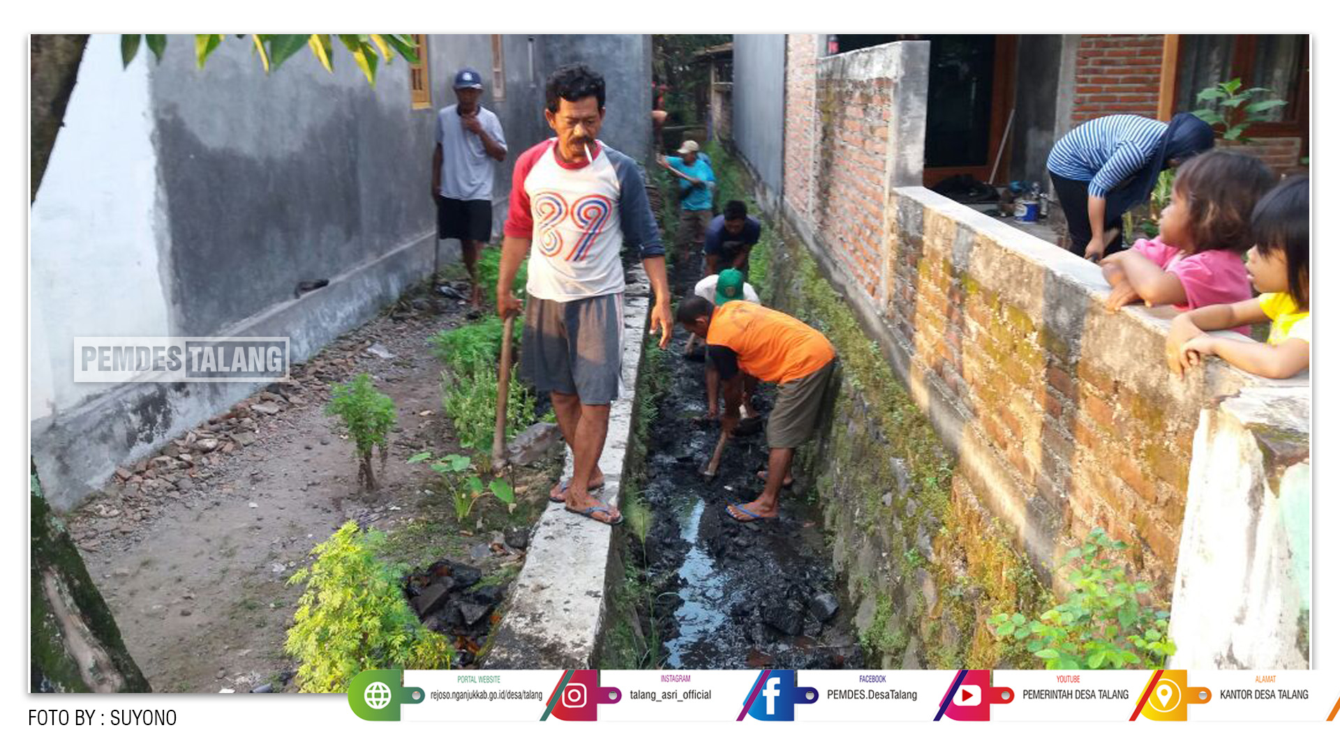 PEMDES TALANG, Warga Lingkungan RT 01 RW 01 Desa Talang Kecamatan Rejoso Kabupaten Nganjuk mengadakan Gotong-royong untuk menjaga kebersihan lingkungan dan mencegah menyebaran virus CORONA yang pandemi ini telah mewabah di seluruh dunia.